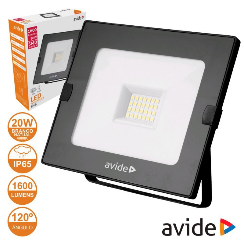 Vista rápida Referência: 5999097914107 FOCO LED 20W 230V 6400K 1610LM PRETO IP65 AVIDE Preço 12,00 € Mais