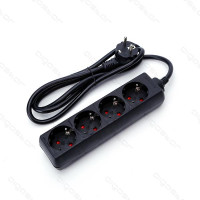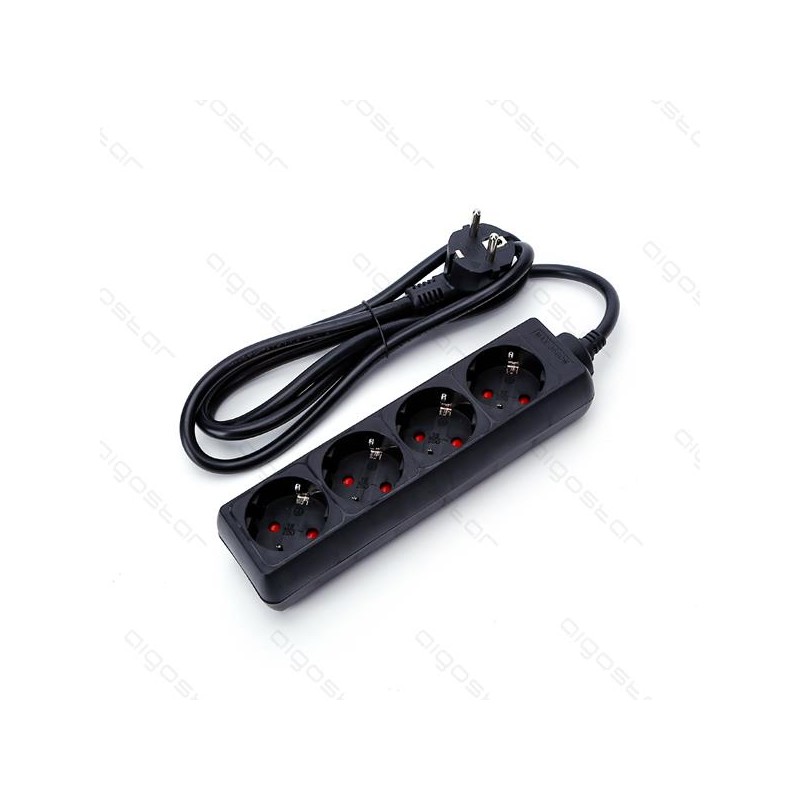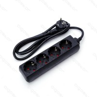 BASE MÚLTIPLA 4 TOMADAS SCHUKO + INTERRUPTOR 1,5m 3x1,5mm COR PRETA EDM